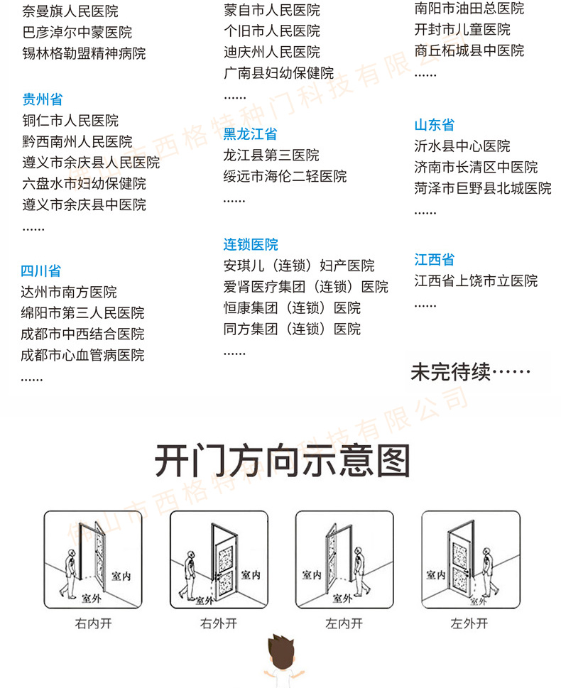 產品簡介:西格,多年來專注醫院門的生產與研發,各種類、顏色的醫院門均可定制,歡迎咨詢。 產品價格:面議
