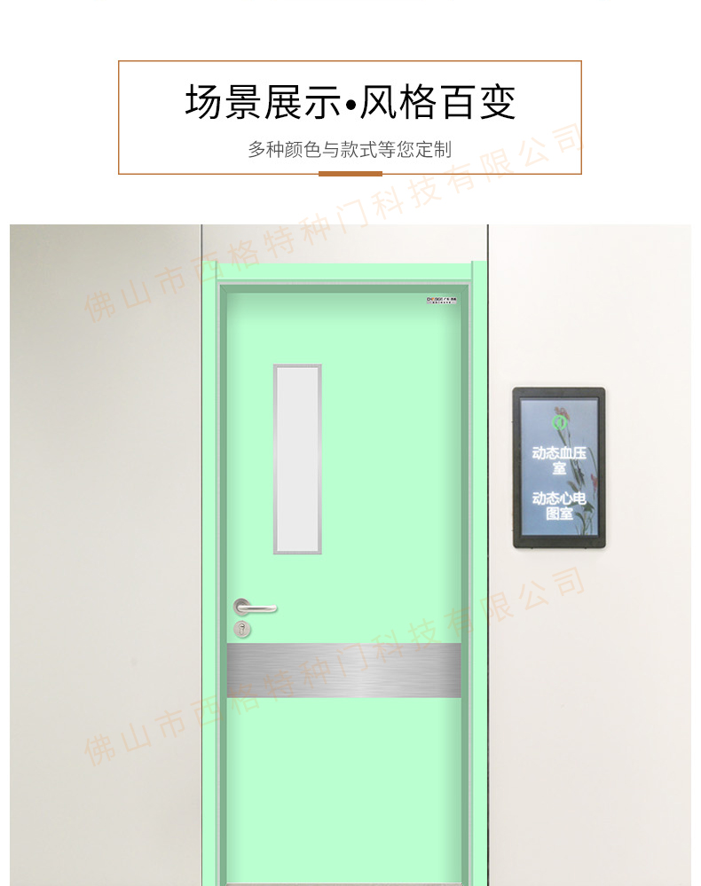 產品簡介:chnsige西格特種門,專業生產醫院門,醫院診室門,醫院辦公室門,醫院衛生間門,木質醫院門,鋼質醫院門,多鐘款式、顏色,尺寸可定制。