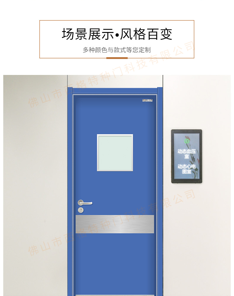 產品簡介:chnsige西格特種門,專業生產醫院門,醫院診室門,醫院辦公室門,醫院衛生間門,木質醫院門,鋼質醫院門,多鐘款式、顏色,尺寸可定制。