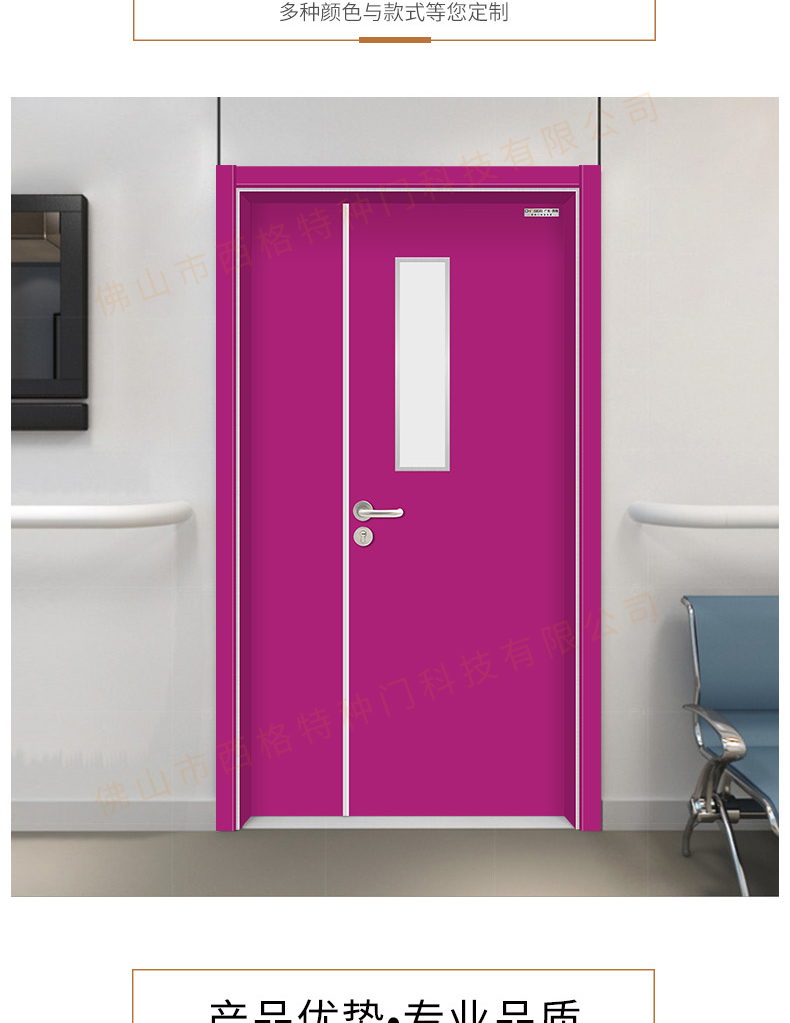 產品簡介:chnsige西格特種門,專業生產病房門,醫院病房門,醫院病房木門,病房木門,木質病房門,鋼質病房門,多鐘款式、顏色,尺寸可定制。